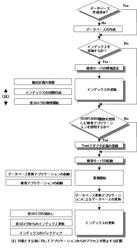 以下の図に、インデックスを作成、または更新する場合のTextアダプタ運用手順を示します。
