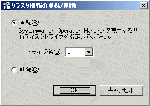 本コマンドを実行すると、[クラスタ情報の登録/削除]ウィンドウが表示されます。