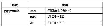 開始日 | 取り出し期間の開始日を指定します。形式は、以下のとおりです。
