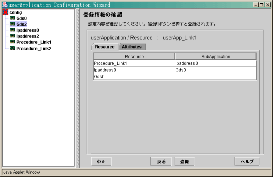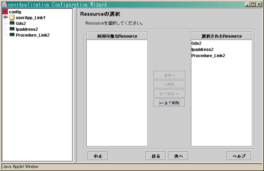 - "userApplication Configration Wizard"をクリックし、次の画面で"Resourceの作成"をクリックします。