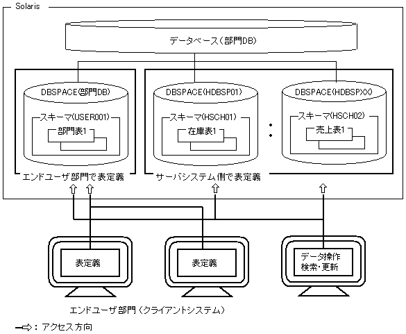 備考2. エンドユーザ部門から、表定義を行うデータベーススペースは、データベース単位に1つだけです。