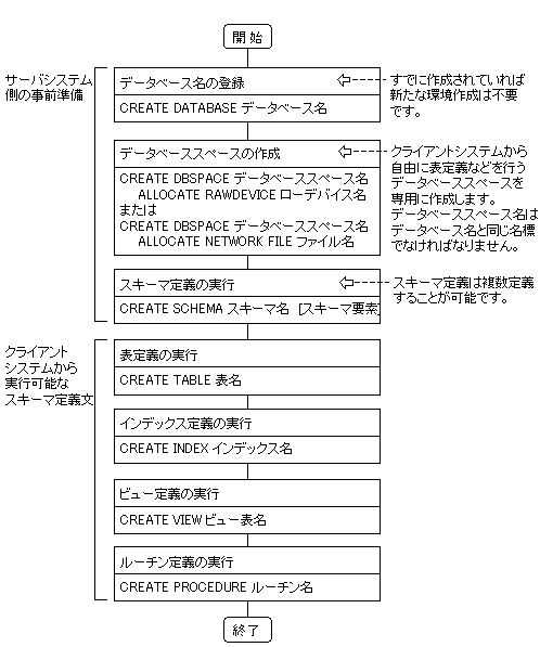以下の図にスキーマ定義文を実行するための処理手順を示します。