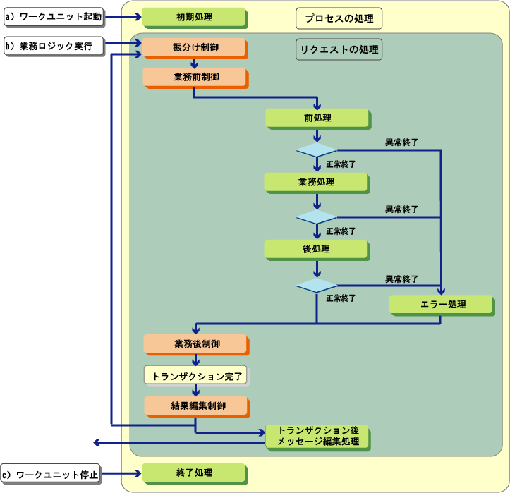 後処理 | クライアントからのリクエスト(メッセージ)ごとに前処理、および業務処理が正常終了した場合に、業務処理の直後に呼び出されます。 | 任意 |