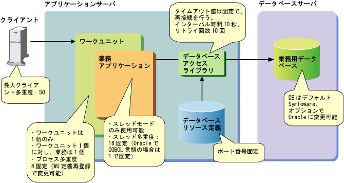 C言語およびCOBOLで利用するデータベース環境の作成/登録、ワークユニット定義の作成/登録、データベースリソース定義の作成/登録、CORBAアプリケーション情報定義の作成/登録を行います。