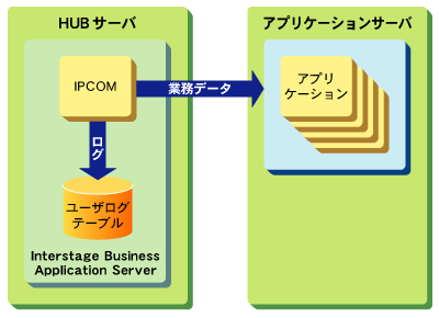 注) HUBサーバとは、業務システムの統合や拡張性・柔軟性・高可用性を実現するために、送信送受信業務代行、複数HUB連携、各種フォーマット変換などを行うためのサーバです。本章ではデータベースを配置しないサーバで、ユーザログの取得要件が高い代表的なサーバという位置付けで例として記述しています。