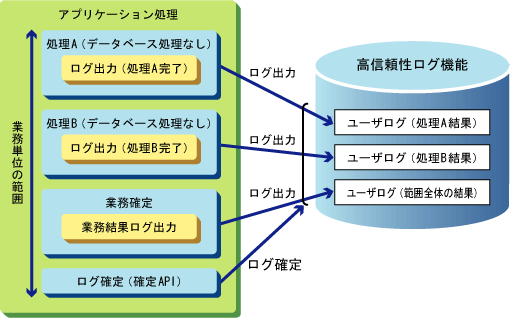高信頼性ログの書込みは、データベース更新で培われた高い信頼性をベースとした技術で実装されています。