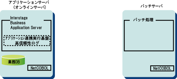 Interstage Business Application Serverは、以下の2つの運用形態をサポートしています。エクスポートユーティリティは、以下の運用形態で高信頼性ログがあるサーバ上で実行できます。