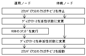 クラスタサービスの停止時(ディスクリソースの非活性状態)にRDBのコマンドを実行する場合は以下の操作を行ってください。