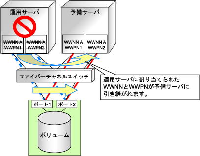 図8.1 I/O仮想を利用したサーバ切替え例(WWNを切り替える場合)