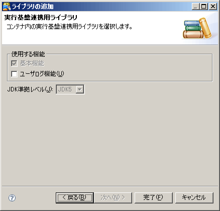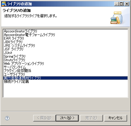 以下に示すプロジェクトのビルドパスの設定に、実行基盤連携用ライブラリを追加します。