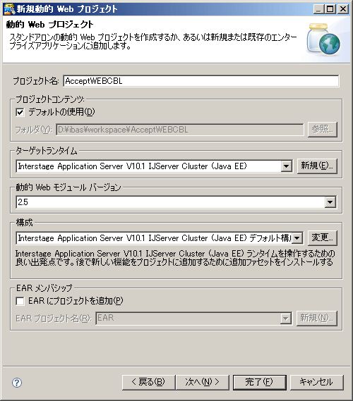 EARにプロジェクトを追加 | チェックしない(初期値) | |