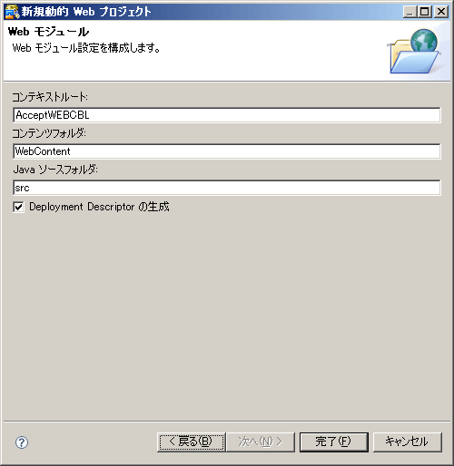 [プロジェクトエクスプローラ]ビューに“AcceptWEBCBL”プロジェクトが追加されます。