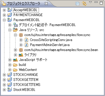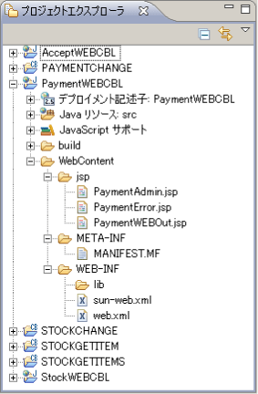 以下に示すWebアプリケーションの資材が、“PaymentWEBCBL”プロジェクトの“WebContent”フォルダに格納されます。