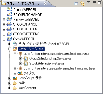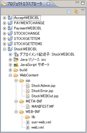 以下に示すWebアプリケーションの資材が、“StockWEBCBL”プロジェクトの“WebContent”フォルダに格納されます。