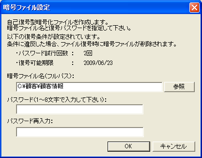 →[暗号ファイル設定]画面が表示されます。