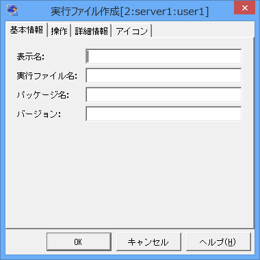 [基本情報]タブを選択し、実行ファイルの[表示名]、[実行ファイル名]、[パッケージ名]、[バージョン]を入力します。