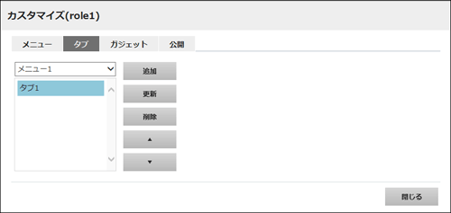 タブのカスタマイズ画面に表示される項目は以下のとおりです。
