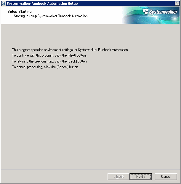 The Systemwalker Runbook Automation Setup Tool will start.