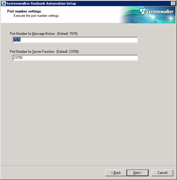 Specify the port number required to run the Systemwalker Runbook Automation server feature.