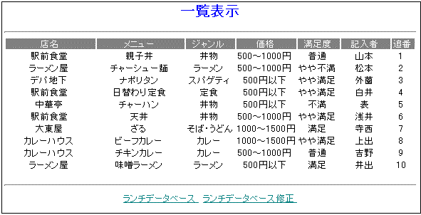 ランチデータベース操作方法(ランチデータベース一覧表示)