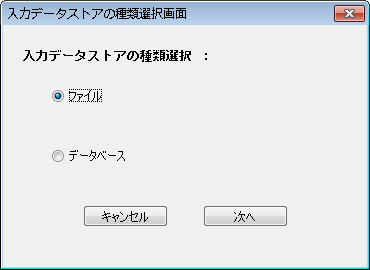 [入力データストアの種類選択]画面です。出力データストアも同じ画面になります。