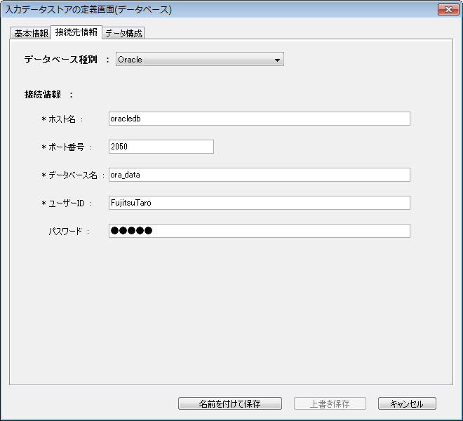 データベースの接続先について表示するタブです。データストアの種類がデータベースの場合に表示されます。必要に応じて編集できます。
