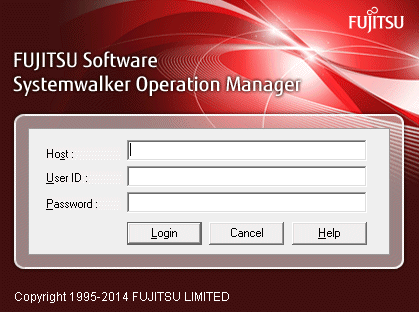 Specify the destination host name, user ID and password on the Systemwalker Operation Manager [Login] window and click the Login button.