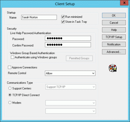 The simplest way to change the configuration of the Live Help Client is using the Client Setup program.