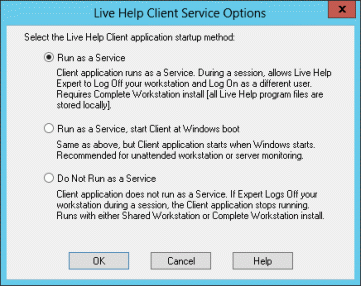Change the running method of the Live Help Client to "Do Not Run as a Service," and exit Client Setup.