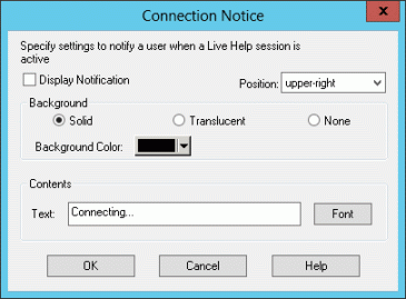 You can configure the notification to be displayed when an Expert is connecting, by specifying the following items: