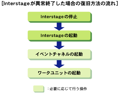 対処完了後は、isstatコマンドを実行し、動作中のサービスが存在しないかどうか確認してください。動作中のサービスが存在する場合は、isstop -fコマンドを実行してInterstageを停止してください。ただし、動作中のサービスを使用している他製品が動作している場合、その製品の運用にも影響するので注意してください。