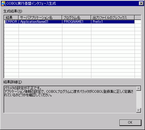問題を解決後、再度COBOL実行基盤インタフェースの生成を実行してください。