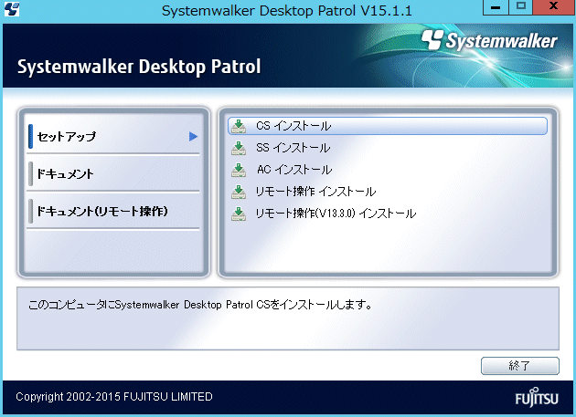 Systemwalker Desktop PatrolのDVD-ROMをPCにセットすると、以下の画面が表示されます。