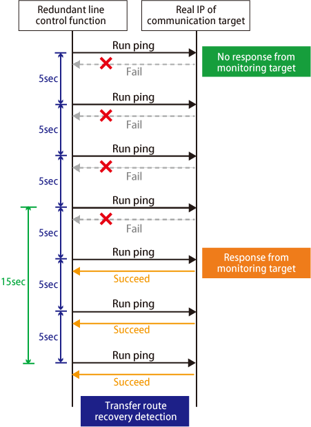When ping is successful for several times by the recovery monitoring function in GS linkage mode, the function determines that the transfer path is recovered.