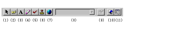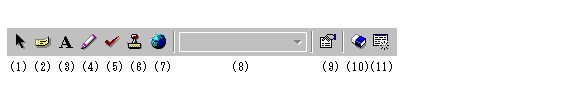 帳票を表示している画面で表示される、記入ツールバーのボタンの意味を説明します。