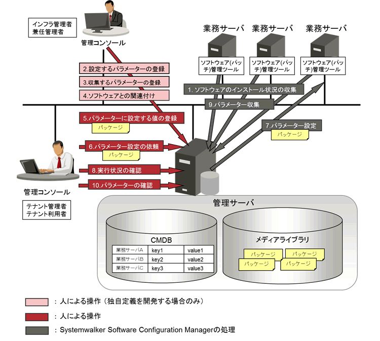 インフラ管理者は、管理サーバ上のコマンドで、パラメーター設定の依頼を実行できます。