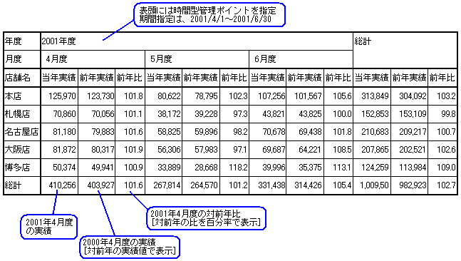 前期間(前年、前半期など)との比較を行うための時系列集計ができるようになります。