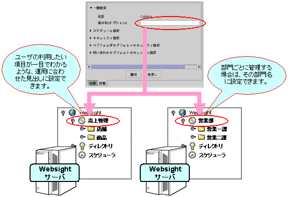 ルートフォルダの表示名を、運用に合わせた見出しや、管理している部門の名前を付けるなど、ユーザにわかりやすい表記にすることができます。