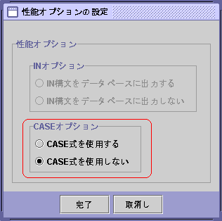 「性能オプションの設定」ダイアログの[CASEオプション]で指定します。