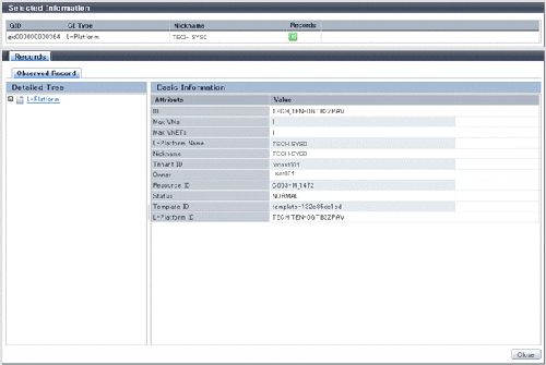 When the Nickname link in the CI list of the system conditions window is clicked, the configuration information of the target tenant, L-Platform or L-Server is displayed in a separate window.