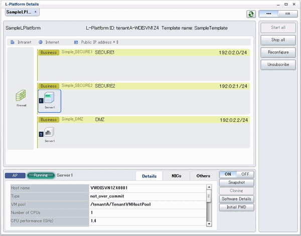 For physical servers, the number of CPUs, operating frequency, and memory size displayed are those specified by the user during the L-Platform subscription or when adding a server as part of an L-Platform reconfiguration.
