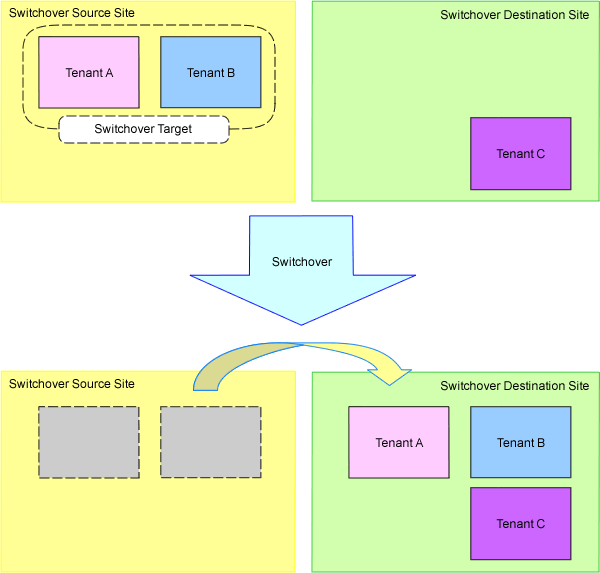 Perform failover/failback by tenant. Neither failover nor failback are possible by site. For details on the switchover levels, refer to "2.3 Switchover Levels".