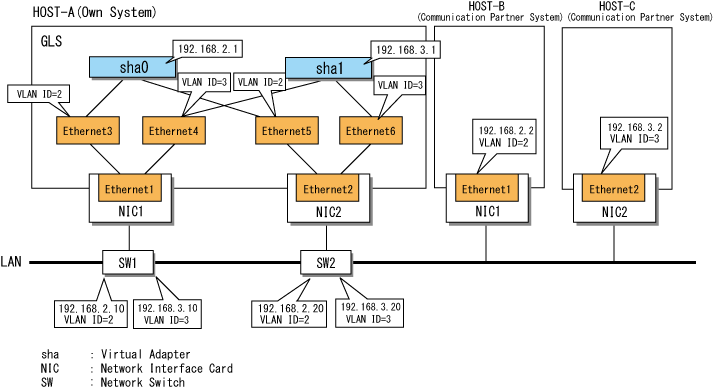 Figure A.3 Configuration Using the VLAN Tagging Function of a Physical Adapter