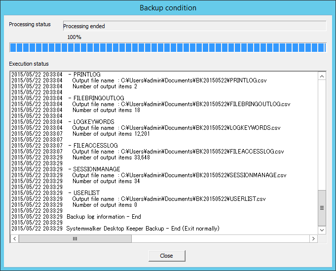 Output operation logs and prohibition logs to CSV files in Log Viewer format and view the logs. The information output in Log Viewer format, however, cannot be used for restoration.