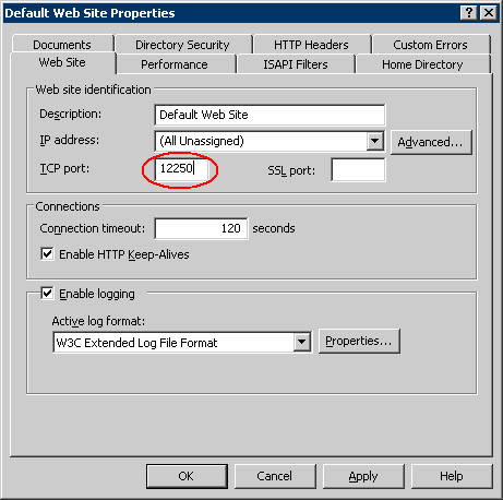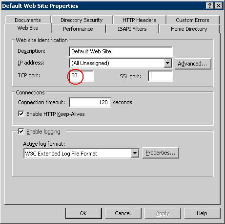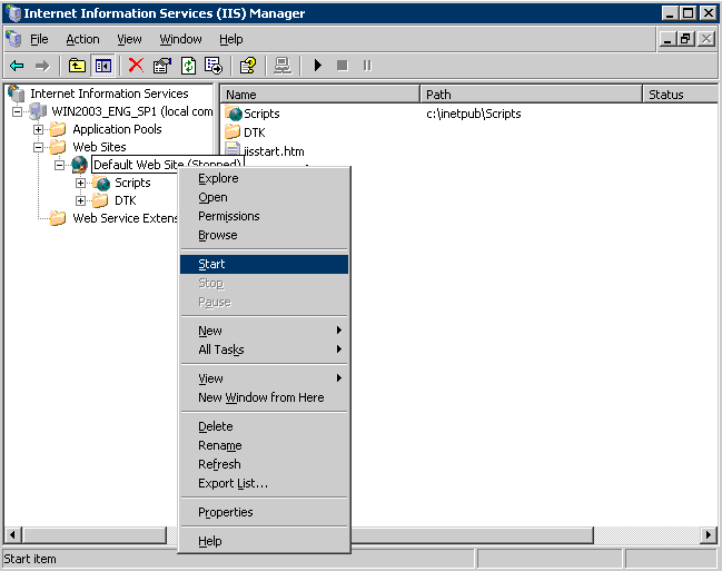 Select Default Web Site of Web Sites, right-click and select Properties.