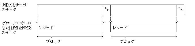 転送元のUNIX/IAサーバ側のファイルを、グローバルサーバ上に格納する際に、レコード変換は以下のとおり行います。