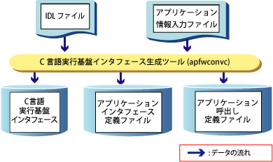 図はサーバがSolarisおよびLinuxの場合の例です。サーバがWindows(R)の場合、C言語実行基盤インタフェース生成ツールとして、“apfwconvwc”を使用します。