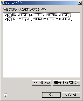 開いているすべてのバッチジョブ定義ファイルを閉じる場合には、メニューバーから[ファイル] > [すべて閉じる]を選択します。ファイルを保存しないで閉じようとした場合、リソースの保存ダイアログが表示されます。