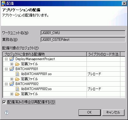 [配備]ページで設定した情報に基づいて、バッチアプリケーションの配備を実行します。