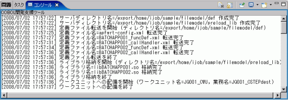 配備処理のログ情報は、[COBOL開発支援ツール]コンソールビューに出力されます。